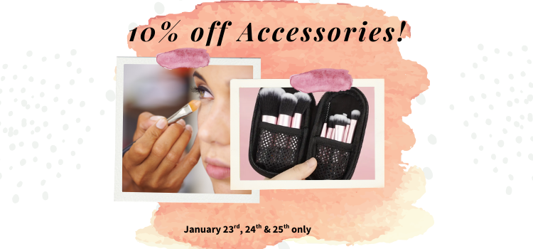 10% off Accessories begins on Friday, January 23, 2026 and ends on Sunday, January 25, 2026 and is only available on our website at www.SweetFaceMinerals.com. Coupon code SKINCARE must be entered into the coupon code field at checkout to get the discount. Discount only applies to items in the "Brushes & Accessories" Category and does not apply to accessories included in Sets and Kits.