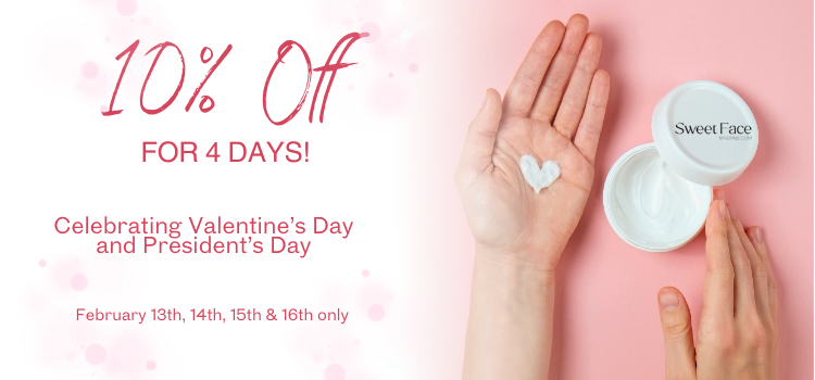 10% off your order begins on Friday, February 13, 2026 and ends on Monday, February 16, 2026 and is only available on our website at www.SweetFaceMinerals.com. Coupon code 2HOLIDAYS must be entered in the coupon code field at checkout to receive 10% off your order. We are unable to honor the code after the order has been placed.